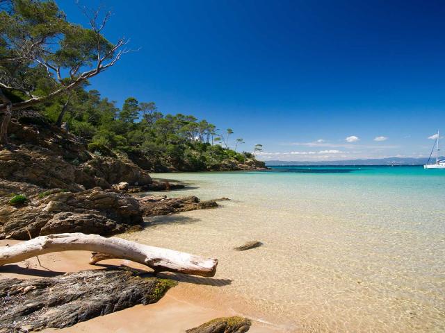 Plage Notre-Dame sur l'île de Porquerolles dans le Parc national de Port-Cros