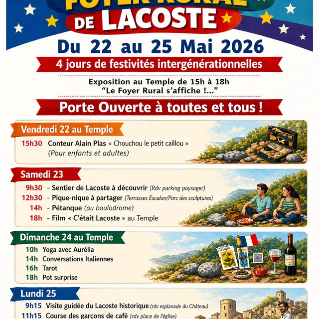 Lacoste (Salle des fêtes), Salle des fêtes ( ancien Temple) - Route de Ménerbes - 84480 Lacoste, Parc de sculptures de Lacoste, 84480 Lacoste