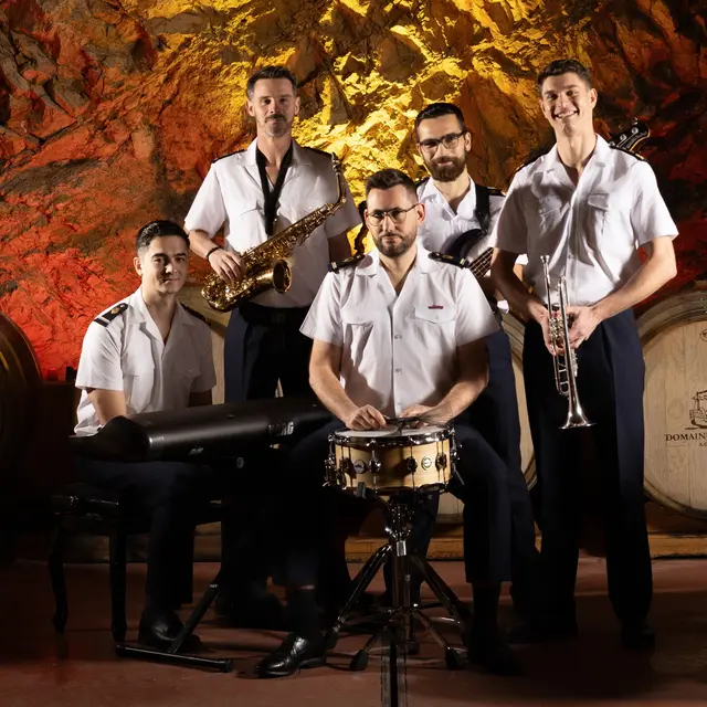 Quintett des Jazzensembles der französischen Marine mit Léonard Lépissier (Bass), Jérémie Éloire (Schlagzeug), David Caron (Keyboard), Julian Broudin (Saxophon) und Alexandre Mely (Trompete).