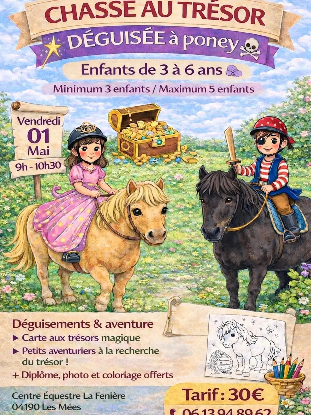 Chasse au trésor déguisée à poney à la Fenière