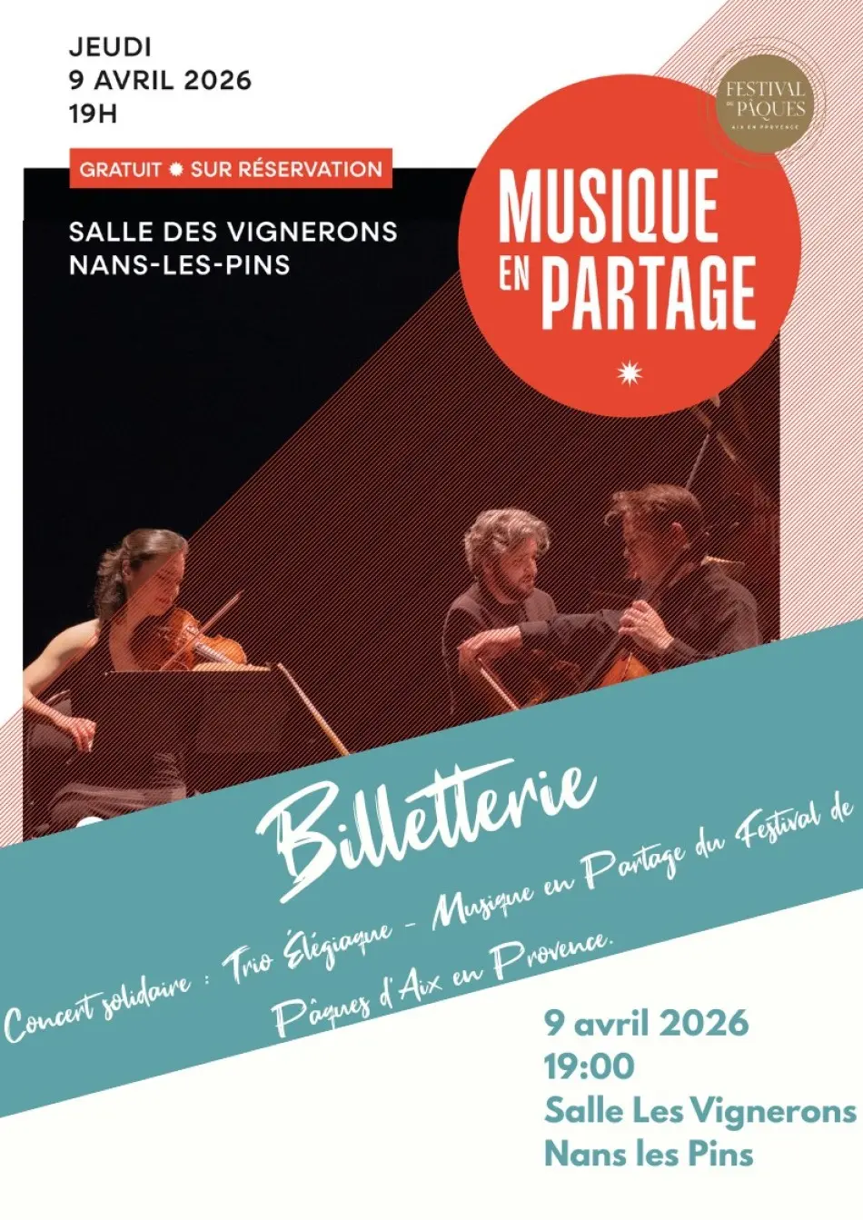 Concert solidaire : Trio Élégiaque - Musique en Partage du Festival de Pâques d'Aix en Provence.