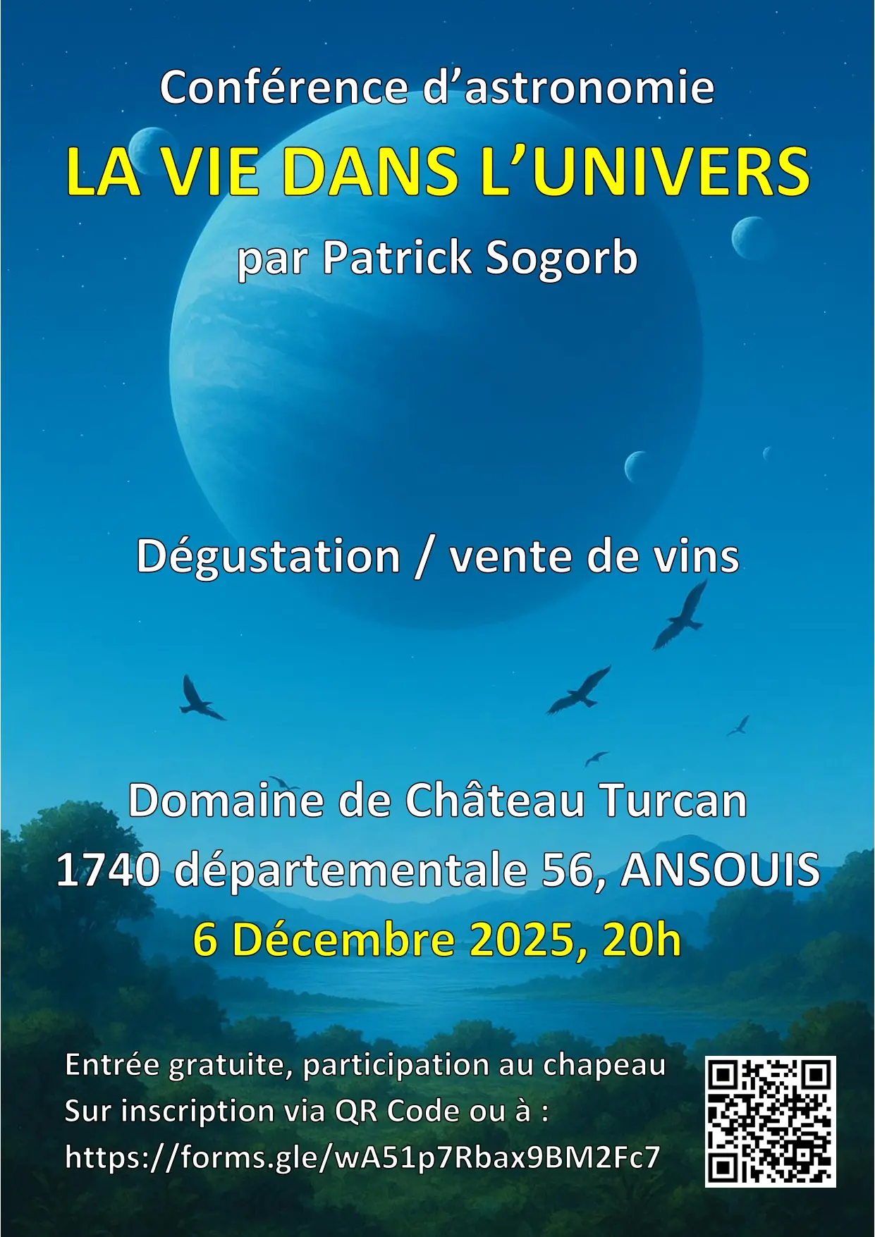 Conférence "La vie dans l'Univers" et dégustation/vente de vins au Château Turcan