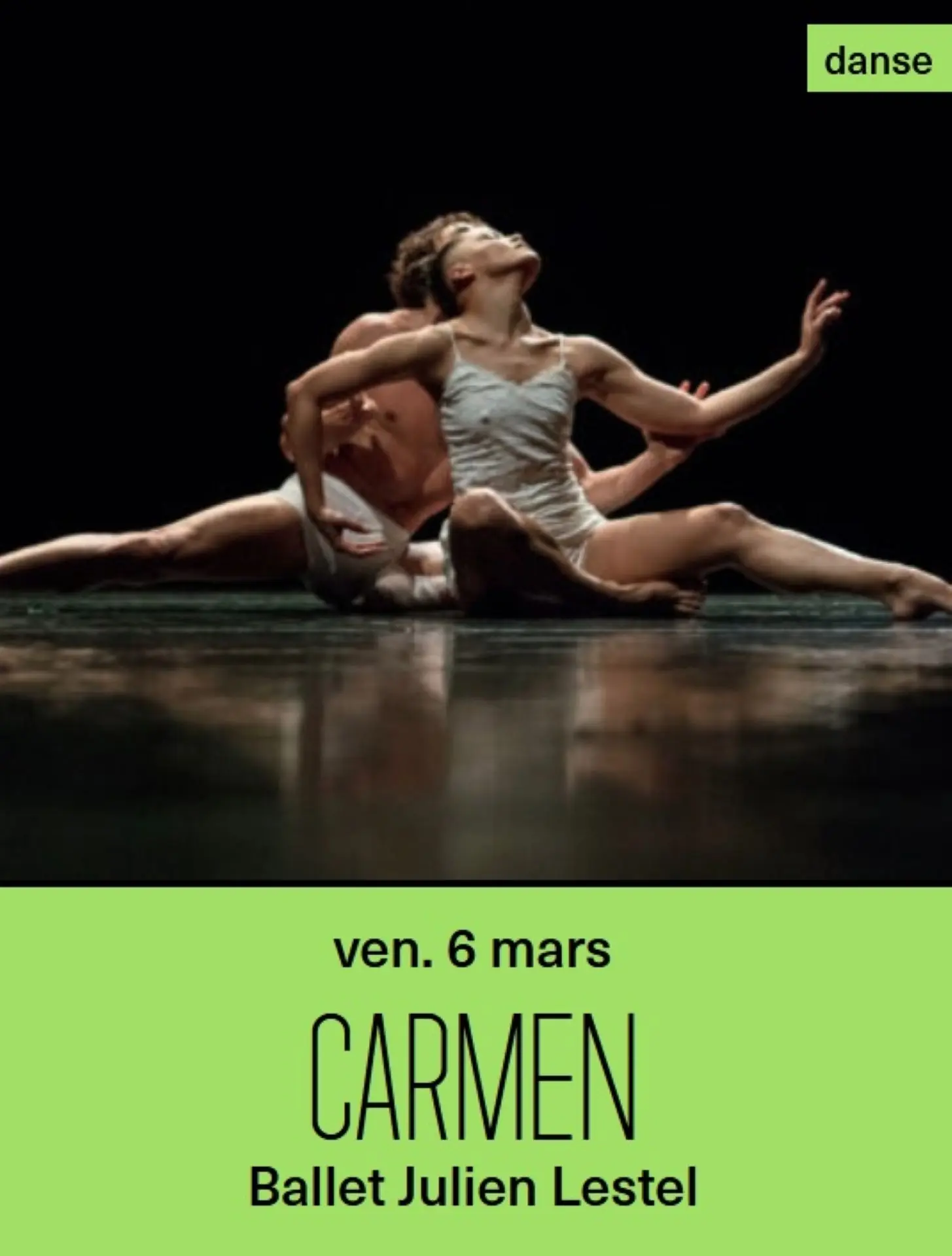 Diese neue Adaption von Carmen, die sehr urban und entschieden zeitgenössisch geprägt ist, steht im Einklang mit dem aktuellen Bewusstsein für die Stellung der Frau in unserer Gesellschaft, ihre Emanzipation, ihren Wunsch nach Gleichberechtigung und wirft die Frage des Femizids auf. Eine rebellische Zigeunerin aus Sevilla wird in ihrem Streben nach Freiheit durch die mörderische Eifersucht eines Mannes aufgehalten. Die Originalität dieser Choreografie liegt in ihrer zeitgenössischen Gestik und ihrer Musik. Die elektroakustische Musikkomposition von Iván Julliard wird von Instrumentalwerken von Georges Bizet und Rodion Shchedrin begleitet. Es ist eine Carmen, die in die Welt von heute versetzt wurde, jenseits aller Grenzen.