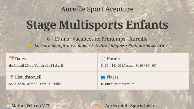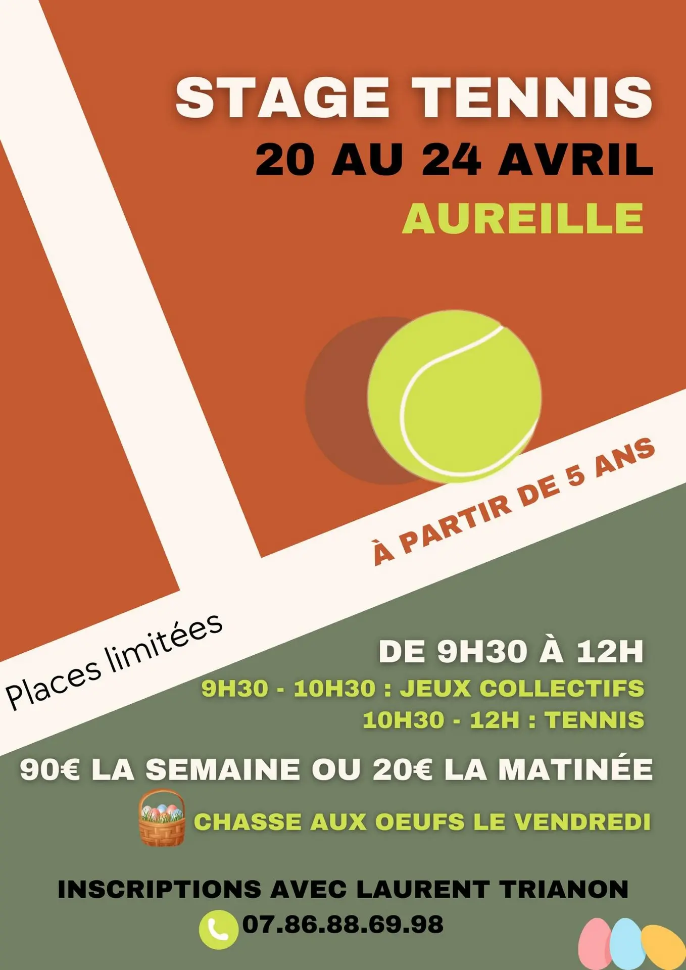 Der Verein Tennis Club Aureillois organisiert vom 20. bis 24. April ein Camp für Kinder im Alter von 5 bis 11 Jahren.