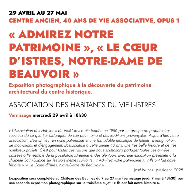 Exposition "Admirez notre patrimoine, le cœur d'Istres, Notre Dame de Beauvoir"