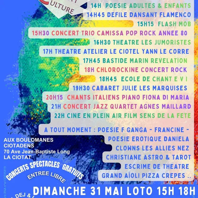 Das Kulturfest, das sich zu einem der wichtigsten Ereignisse der Populärkultur in La Ciotat entwickelt hat, präsentiert Künstler sowie lokale und regionale Ensembles aus allen Bereichen der darstellenden Kunst.