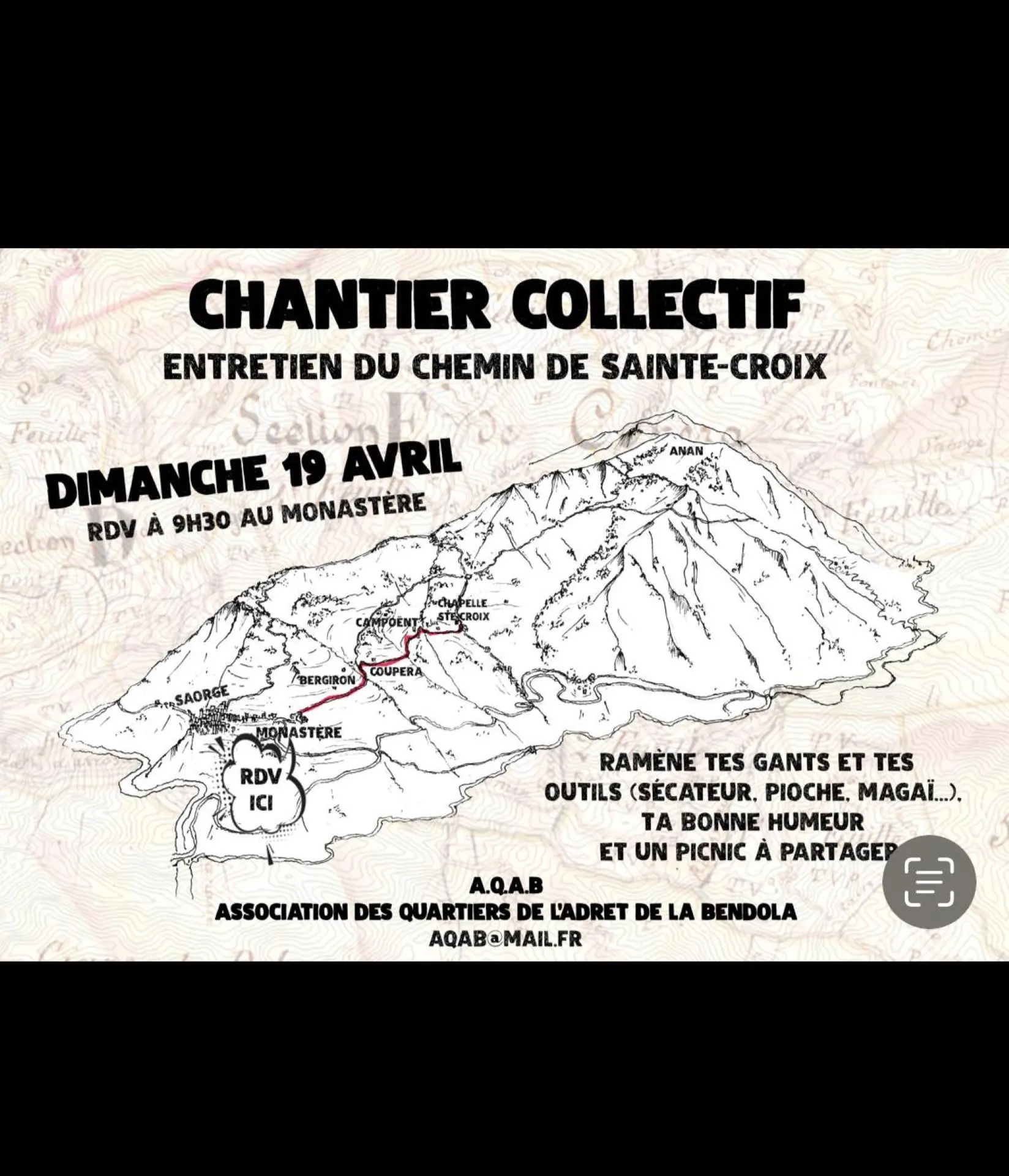 Gemeinsamer Arbeitseinsatz zur Instandhaltung des Weges nach Sainte-Croix. Treffpunkt um 9:30 Uhr am Kloster. Bringen Sie Handschuhe, Werkzeug, gute Laune und ein Picknick zum Teilen mit.