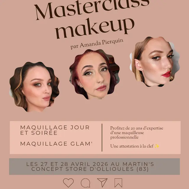 Am 27. und 28. April 2026 heiße ich Sie in Ollioules im Martin's Concept Store zu einem exklusiven Workshop rund um Tages- und Abend-Make-up willkommen.