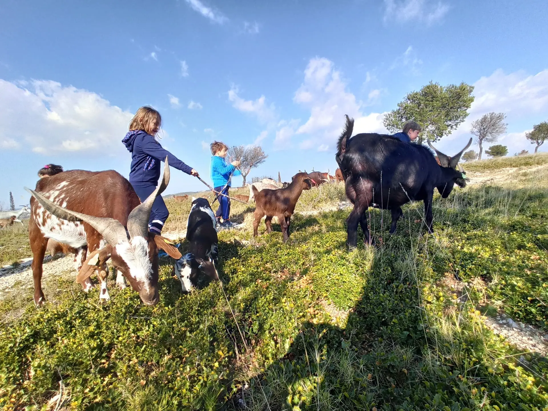 Der Höhepunkt dieses Tages wird der Spaziergang in den umliegenden Hügeln sein. Fahren Sie fast 3 km durch wilde Natur, um das Plateau von La Gatasse zu erreichen. Gehen Sie im ruckartigen Rhythmus der Herde und erklimmen Sie den Hügel zum Läuten der Glocken und Meckern, die diese hübsche kleine Truppe animieren. Die Kinder werden dem Drang nicht widerstehen, Bernard und dem Hirten bei der Beaufsichtigung der Herde zu helfen. Die jungen Ziegen, ebenso verspielt wie neugierig, werden versuchen, der Aufsicht ihrer Mütter zu entkommen.