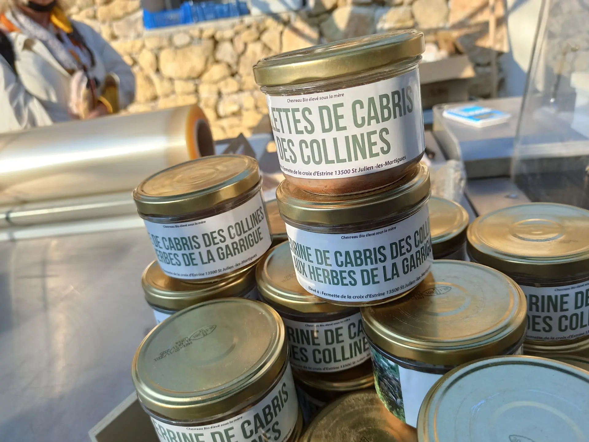 Vor Ort können Sie verschiedene Produkte kaufen: Ziegenkäse, Natur-, Schokoladen- oder Fruchtjoghurt, Eiercremes, Milchflaschen (von Rove), Terrinen, Marmeladen ... und natürlich den Brousse du Rove AOP, diesen Frischkäse aus Vollmilch und mit leicht würzigem Geschmack, die Sie in einer Tube kaufen und auf Ihrem Teller entformen, um sie mit einer Gabel zu essen.
