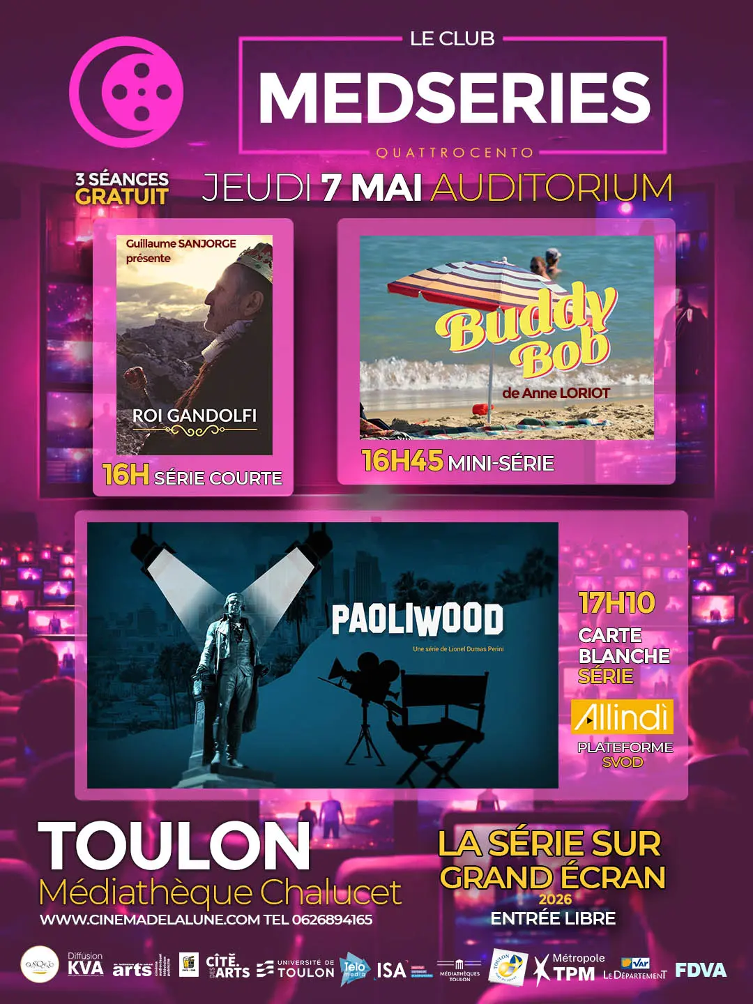 Der Verein Quattrocento startet eine neue Veranstaltung, die den Serien gewidmet ist: "Le Club Medséries". Mit Vorführungen, Vorpremieren, Begegnungen und Austauschmöglichkeiten bietet diese monatliche Reihe die Möglichkeit, das Serienschaffen unter einem mediterranen Blickwinkel zu erkunden.