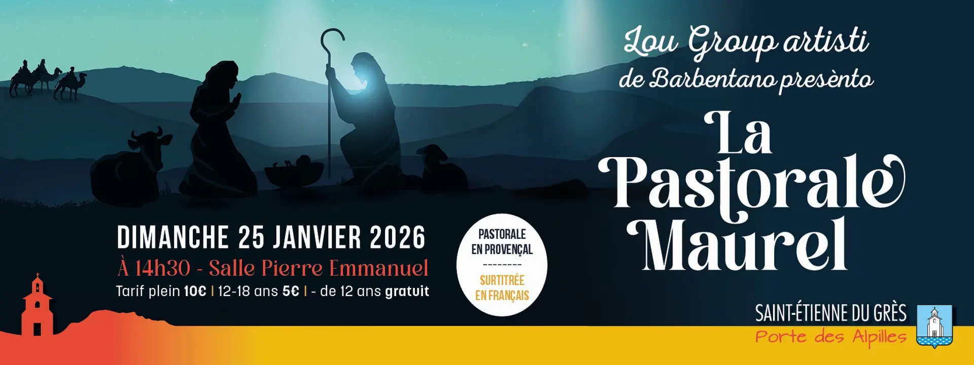 Die Künstlergruppe von Barbentane präsentiert „Le Mystère de la naissance de Notre Seigneur Jésus Christ” (Das Geheimnis der Geburt unseres Herrn Jesus Christus), besser bekannt unter dem Namen „Pastorale Maurel”, das berühmteste Stück der Provence, das 1844 von Antoine Maurel in Marseille geschrieben wurde.