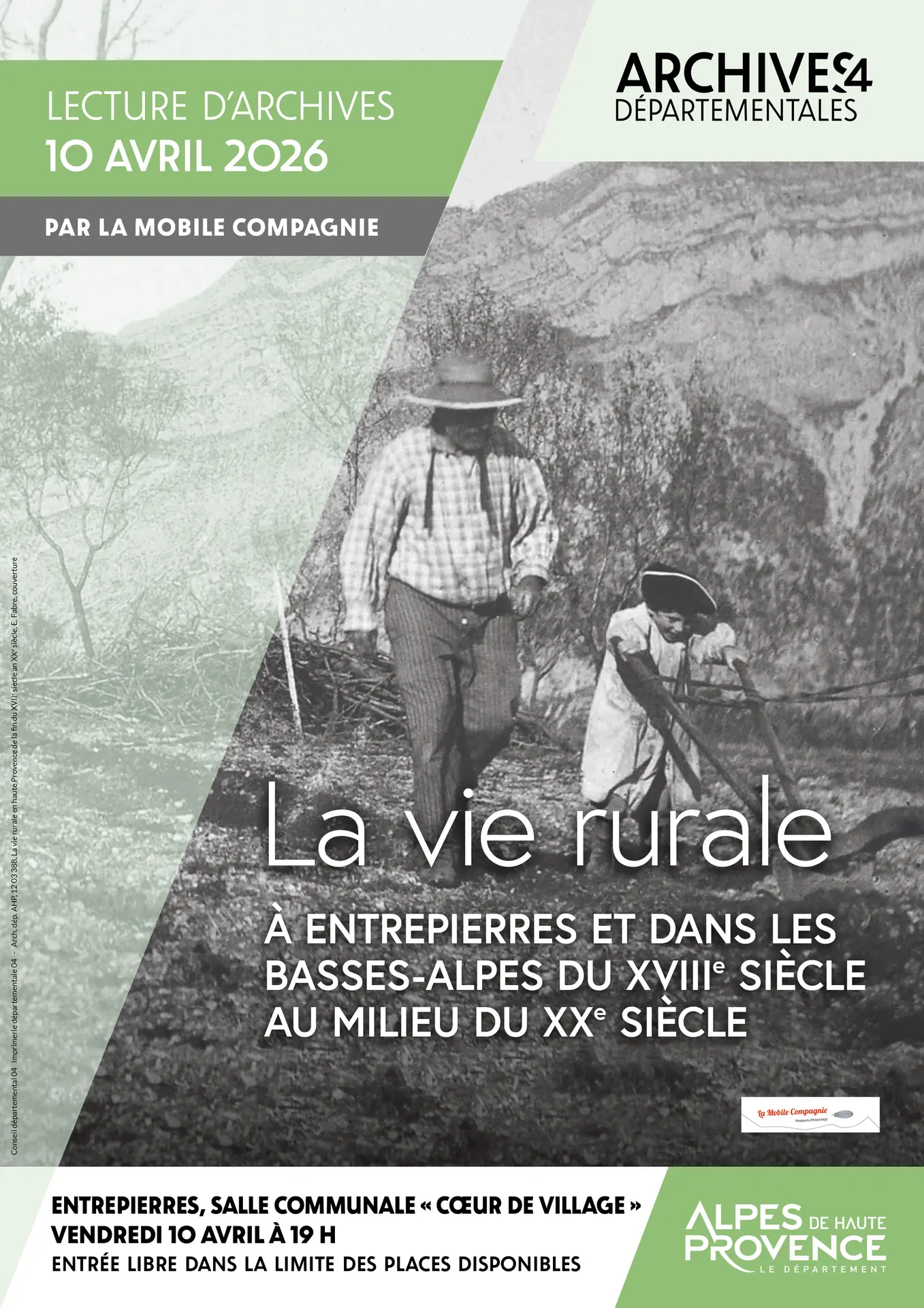 Lecture d'archives "La vie rurale à Entrepierres et dans les Basses-Alpes"