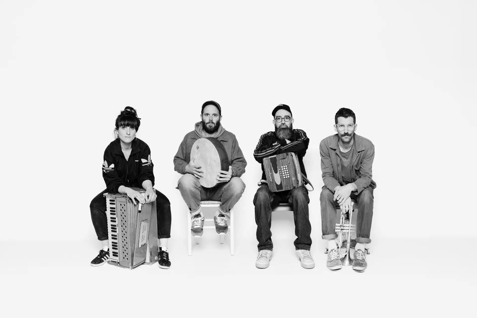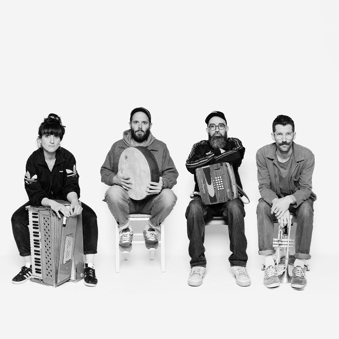 Die betörende Musik dieses Quartetts öffnet eine völlig neue Bresche in die Welt des Bal Folk! Akkordeons, aber auch Trompete und Schlagzeug mit hypnotischen Grooves begleiten eine einzigartige Stimme.