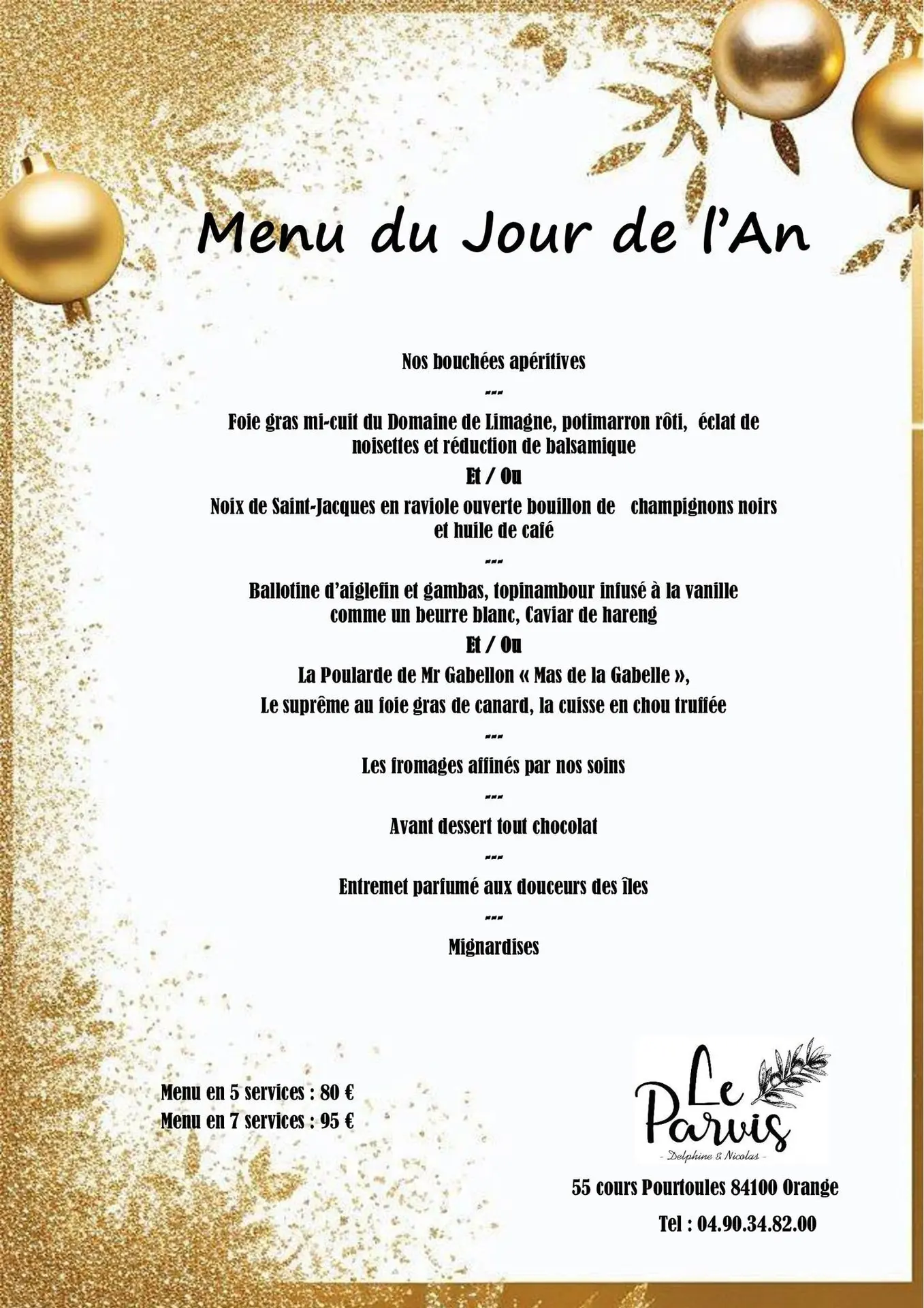 Menu du jour de l'an au Parvis