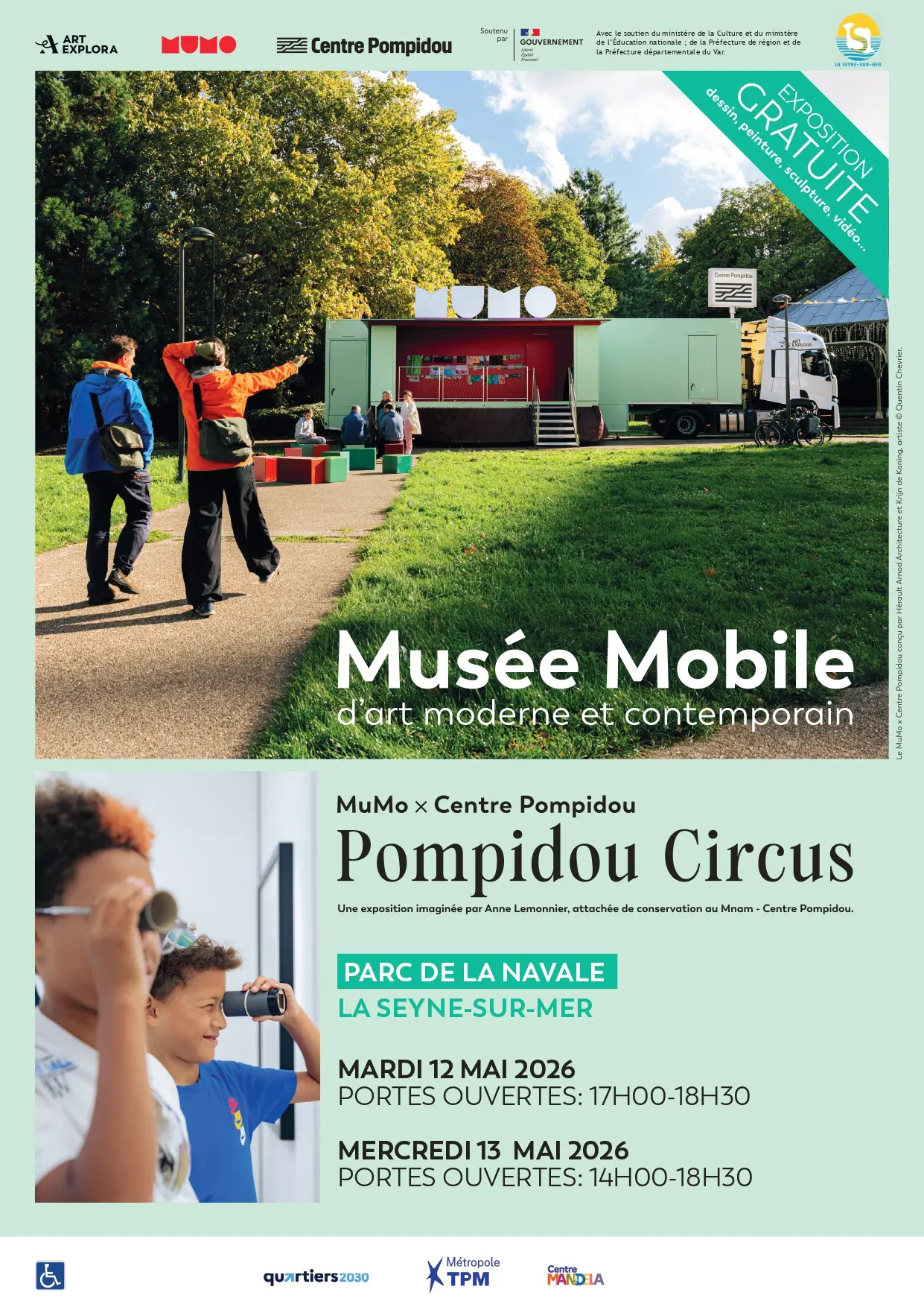 Etappe der Tournee "MuMo x Centre Pompidou (mobiles Museum für zeitgenössische Kunst, das in Zusammenarbeit mit der Stiftung Art Explora und dem Kulturministerium realisiert wurde), um die von den Teams des Centre Pompidou erdachte Ausstellung "Pompidou Circus" zu präsentieren.