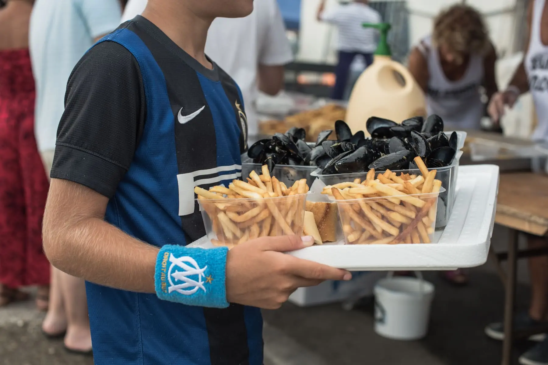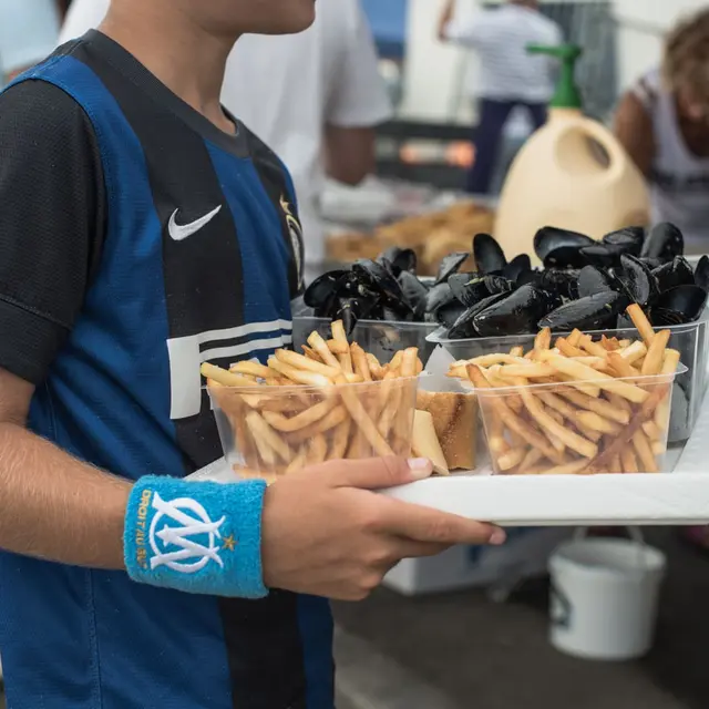 Und immer regionale Produkte: Die Muscheln stammen aus Carteau, der Roséwein aus Saint-Julien-les-Martigues und die Pommes frites werden aus französischen Kartoffeln zubereitet, die in der Nähe des Étang de Berre geerntet werden.