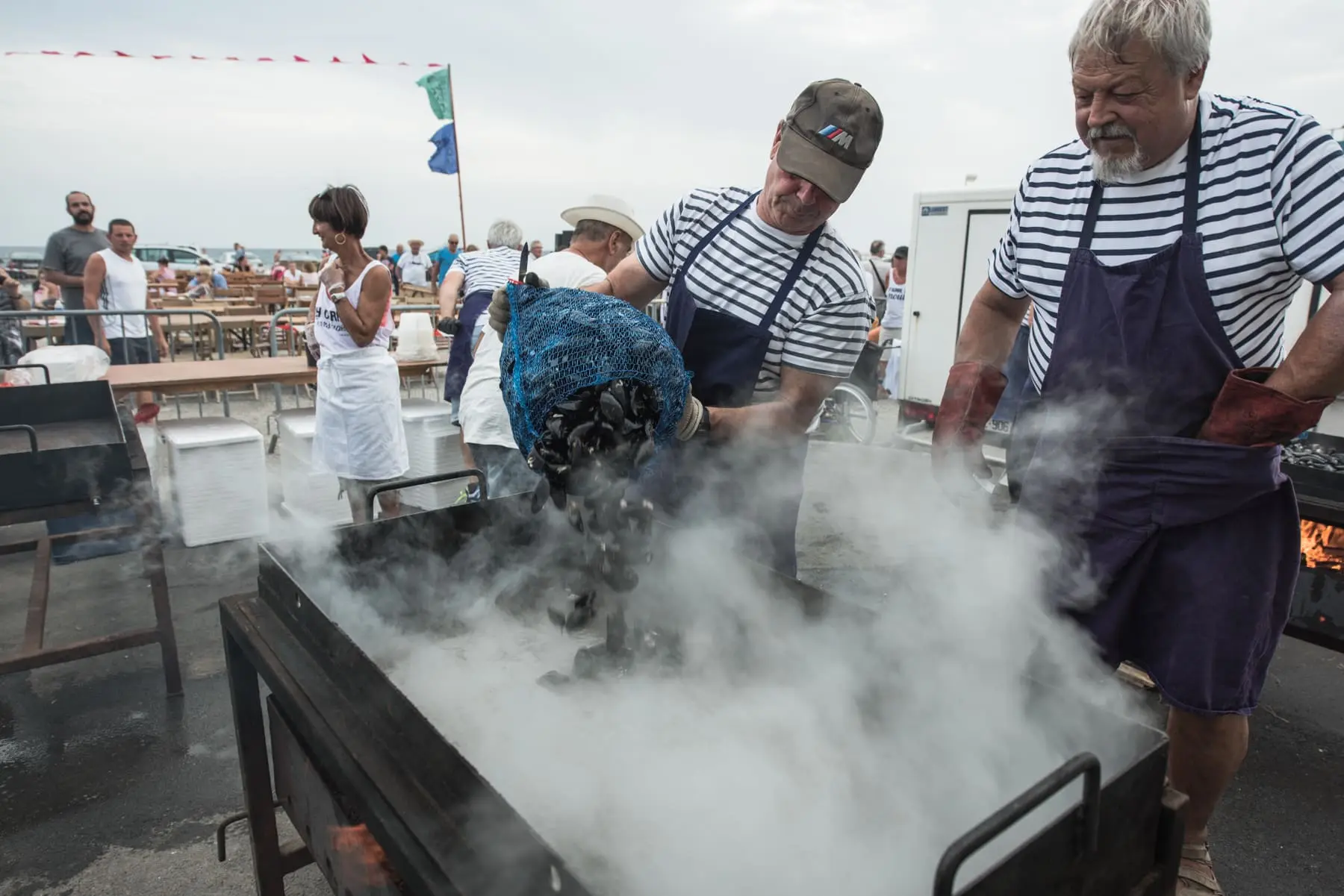 Kleiner Geheimtipp: Brasucade ist eine traditionelle und originelle Zubereitungsart für Muscheln: In einer großen Stahlpfanne öffnen sich die Muscheln über starker Flamme langsam und geben ihren Saft frei. Sobald sich alle Muscheln geöffnet haben, wird eine köstliche Mischung hinzugefügt: Zwiebeln, Kräuter der Provence und Weißwein (das Rezept bleibt unser Geheimnis). All diese wunderbaren Zutaten ergeben zusammen die besten Muscheln der Küste!