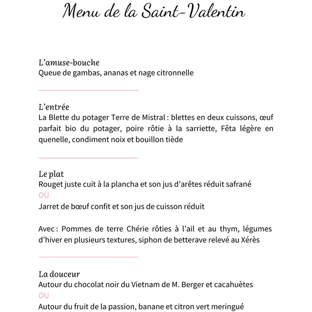 Repas de Saint-Valentin au Domaine Terre de Mistral