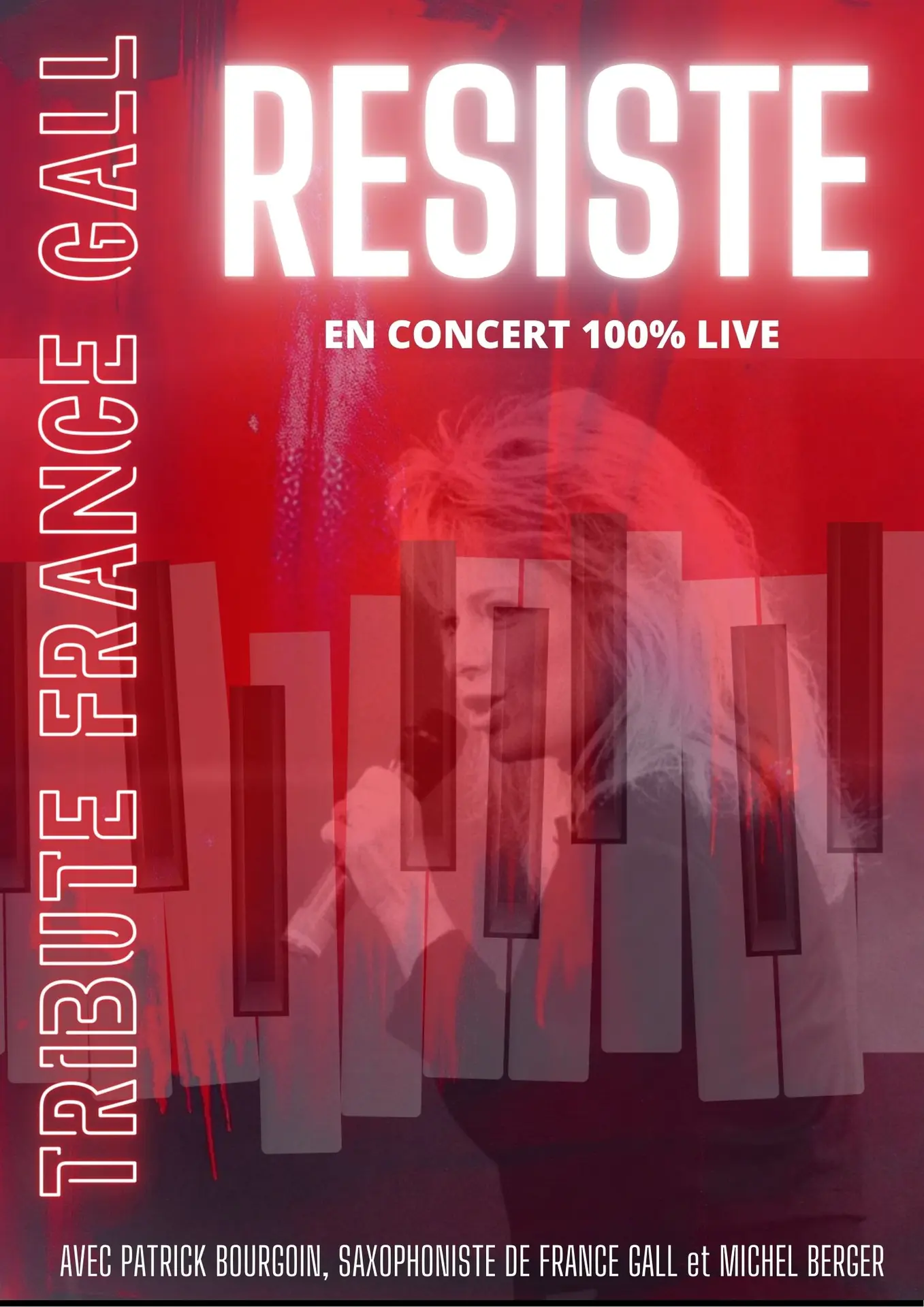 Der Tribute "Résiste" ist eine Hommage an France Gall mit den größten Hits aus der Berger-Periode. Fünf Ausnahmemusiker auf der Bühne für ein 100%iges Live-Konzert. Mit Patrick Bourgoin, Saxophonist von France Gall und Michel Berger.