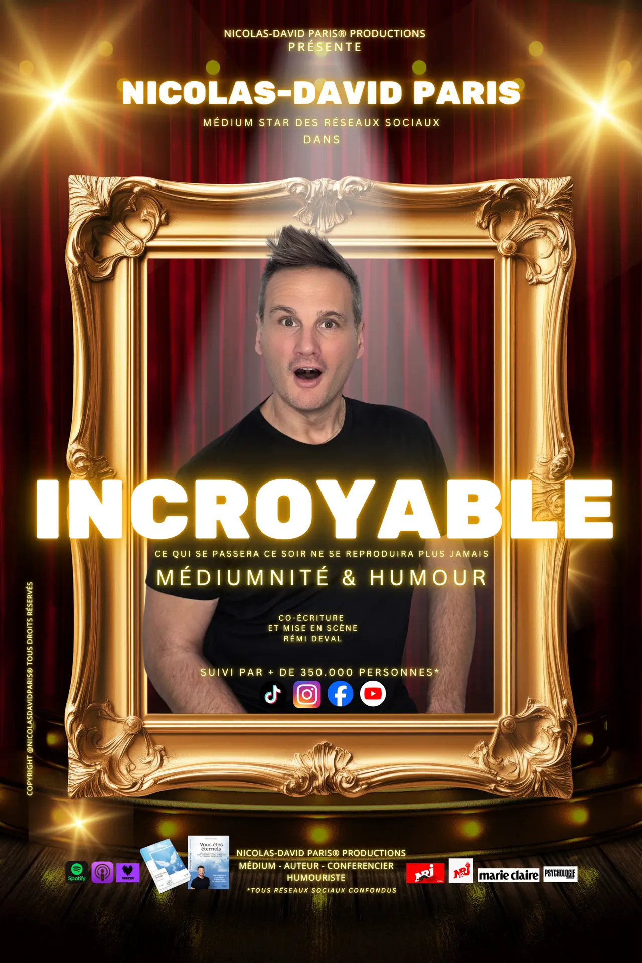 In dieser Show nimmt Nicolas-David Paris Klischees auseinander, karikiert kompromisslos, erzählt mit brennendem Humor von seinem Leben als Medium, und plötzlich betritt das Unsichtbare die Bühne.