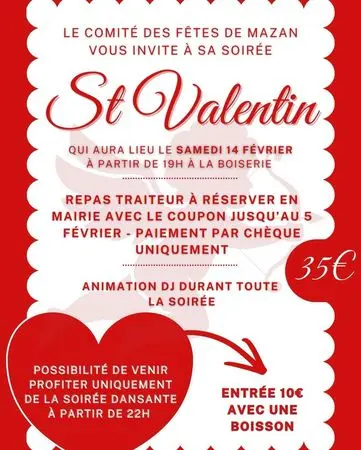Feiern Sie den Valentinstag in Mazan mit einem einzigartigen Abend! Beginnen Sie mit einem Karaoke, das ab 19 Uhr von Jeff und Flo moderiert wird, und tanzen Sie dann bis 1 Uhr zu den Hits der 80er Jahre.