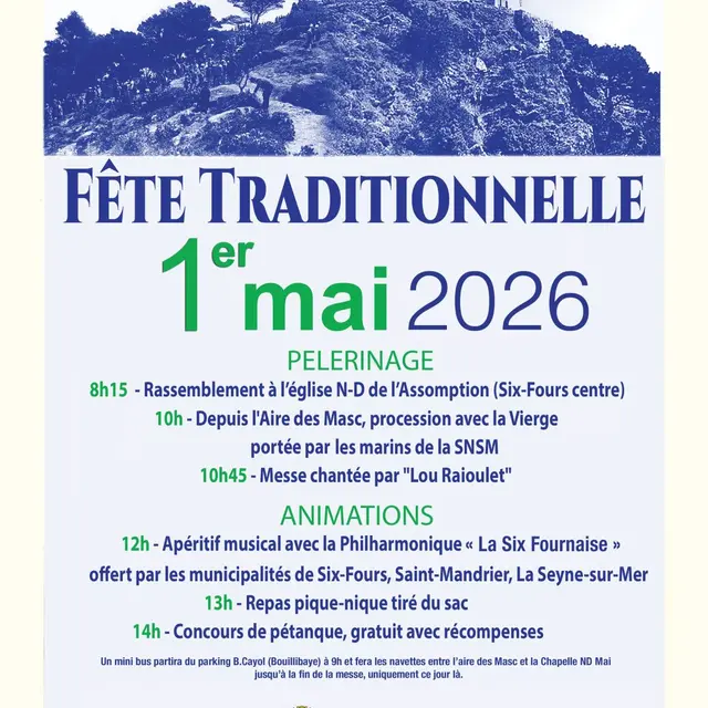 12 Uhr: Musikalischer Aperitif mit der Philharmonique la Seynoise und Tänze mit der Gruppe "La Respelido de Saint-Mandrier", angeboten von den Gemeinden Six-Fours, Saint-Mandrier, La Seyne-sur-mer.