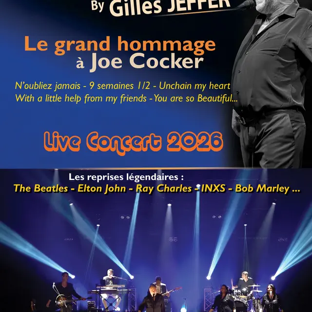 Die Tribute Band von Gilles Jeffer und seinen Musikern lässt Sie an den größten Hits von Joe Cocker teilhaben, von seiner Entdeckung beim Woodstock-Festival 1969 bis zu seinem letzten Album im Jahr 2014.