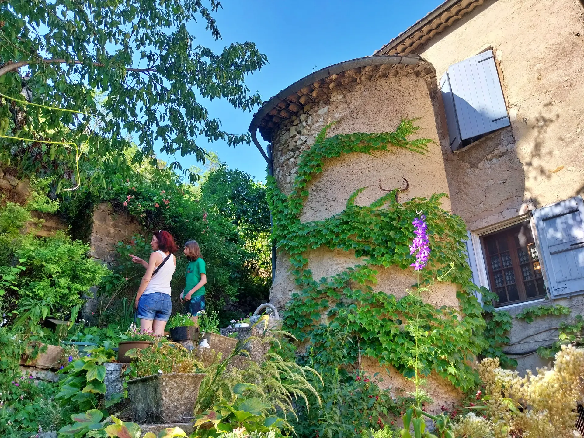 Dégustation de vin rosé en terrasse, sous le soleil de Provence, avec vue sur la campagne environnante.