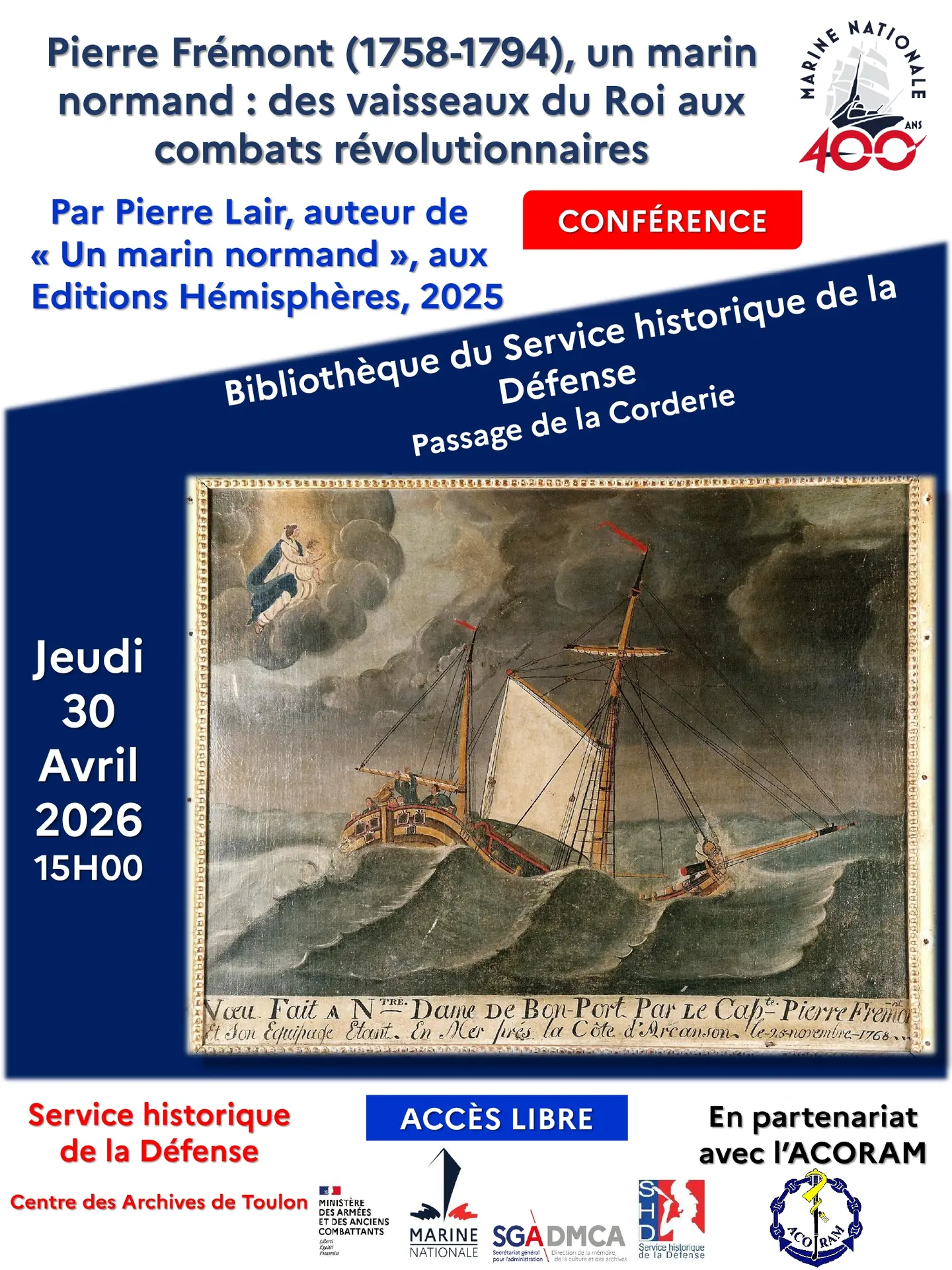 Vortrag - Pierre Frémont (1758-1794), ein normannischer Seemann: von den Schiffen des Königs zu den revolutionären Kämpfen