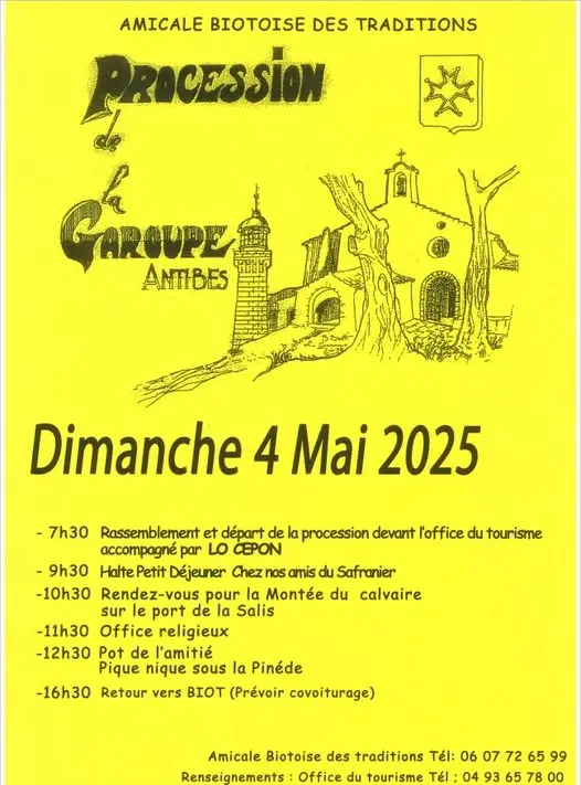 Jedes Jahr im Mai organisiert der Verein „Amicale Biotoise des Traditions“ die Wallfahrt zur Garoupe zu Ehren der Jungfrau Maria, die im Jahr 1609 angeblich Regen herabkommen ließ, als Biot unter einer verheerenden Dürre litt.