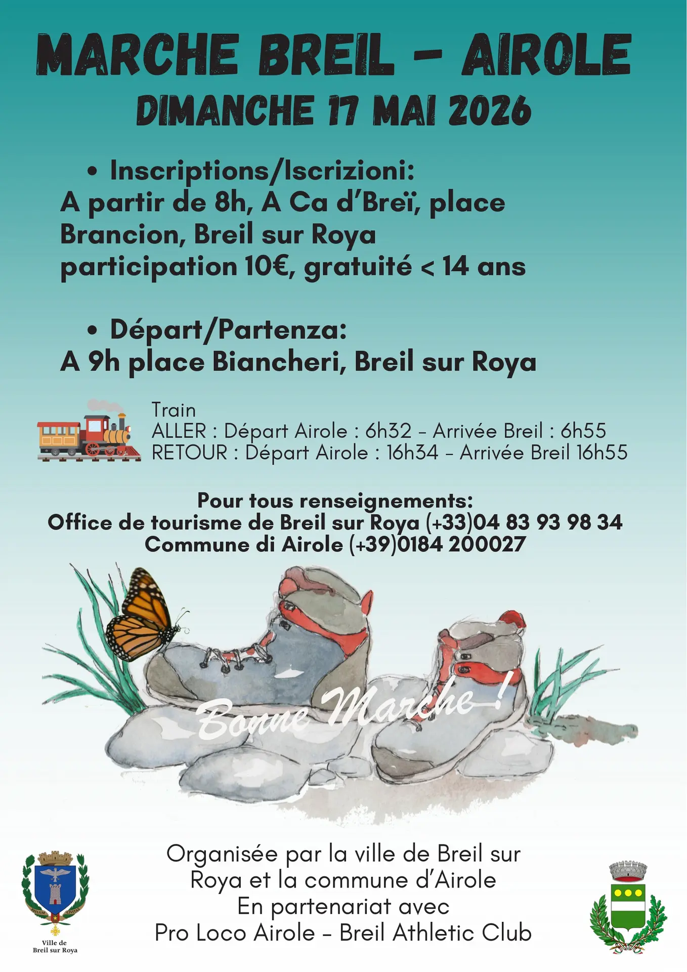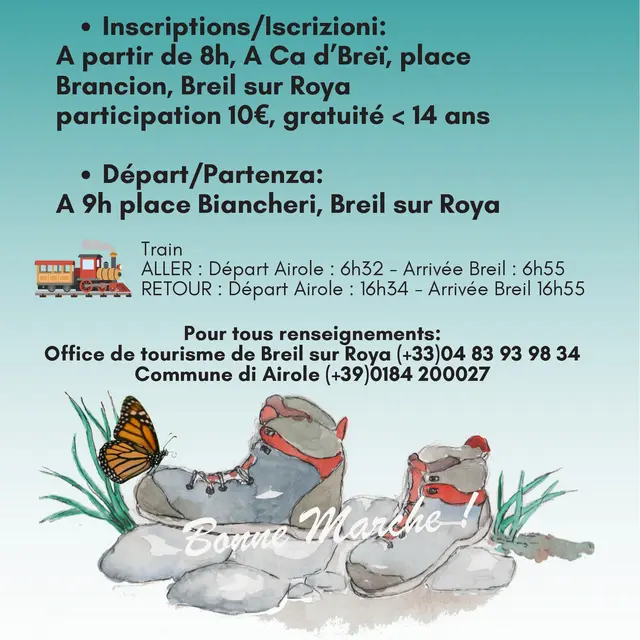 Die Gemeinden Airole und Breil organisieren zusammen mit Pazapa, Breil Athletic Club, Pro Loco Airole die traditionelle Wanderung: Diesmal in Richtung Airole -> Breil, 5 Stunden auf dem grenzüberschreitenden Talweg entlang der Windungen des Roya-Flusses.