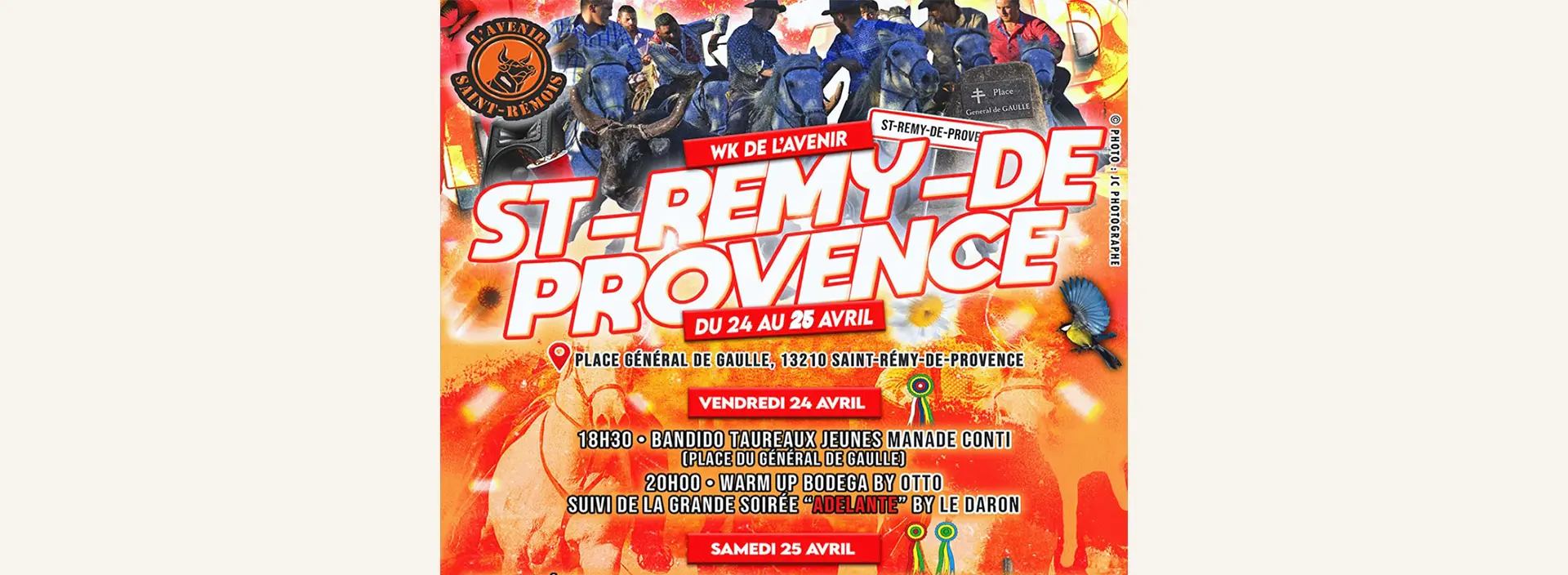 Wir sehen uns am 24. und 25. April zu einem Wochenende voller Tradition, Feststimmung und Adrenalin im Herzen von Saint-Rémy-de-Provence!