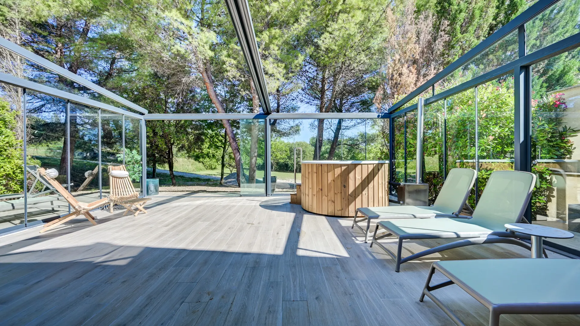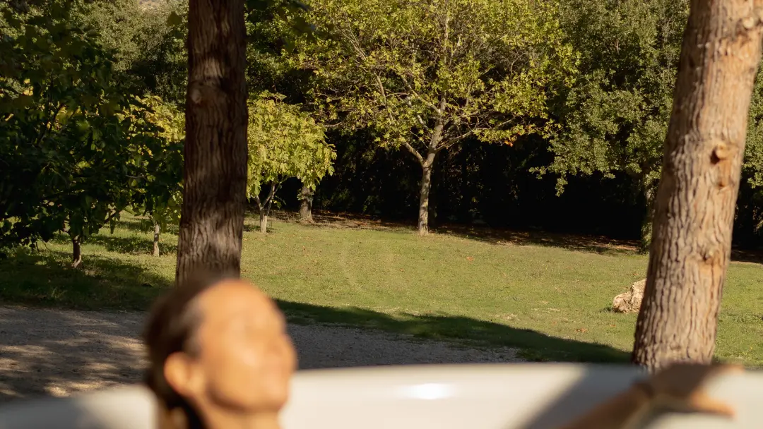 Nordisches Bad: Tauchen Sie im Freien, umgeben von der Natur, in ein Bad mit warmem Wasser ein und genießen Sie die Vorzüge eines entspannenden Bades, während Sie die reine, belebende Luft unserer Umgebung einatmen.