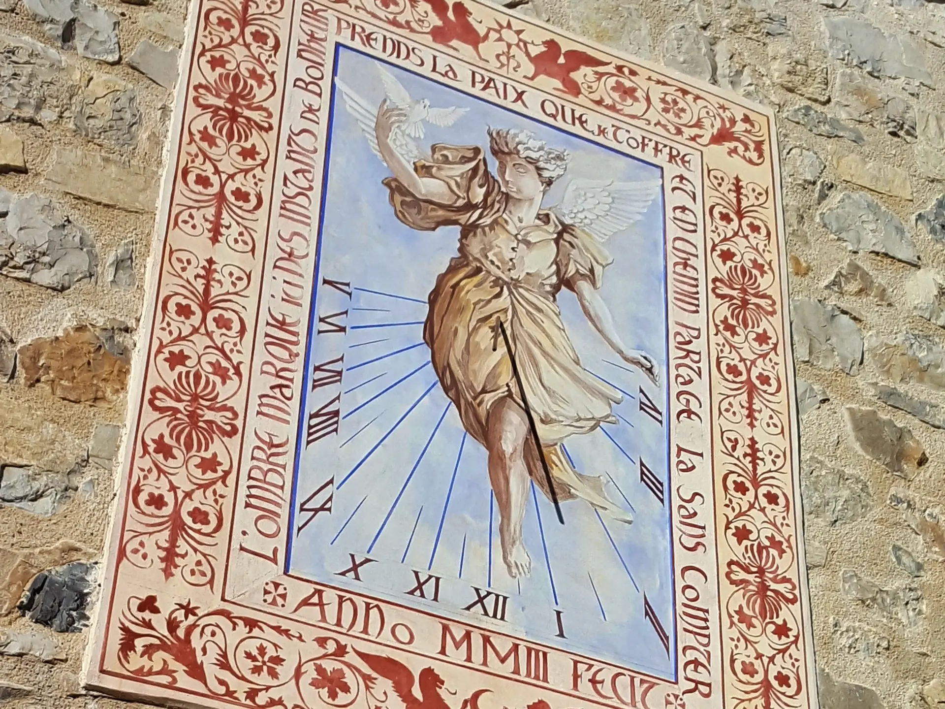Eine altüberlieferte Tradition, die Rémi Potey, Sonnenuhrkünstler und Freskenmaler, fortsetzt. In den 1990ern fertigte er zahlreiche Freco-Sonnenuhren. Gehen Sie im ganzen Gebiet mit Ihren Kindern auf die Sonnenuhrfresken und -sprüche-Jagd! Gönnen Sie sich das Vergnügen, diese Straße ganz nach Ihrem Geschmack zu durchqueren, entdecken Sie das gebaute und natürliche Erbe unserer Täler.