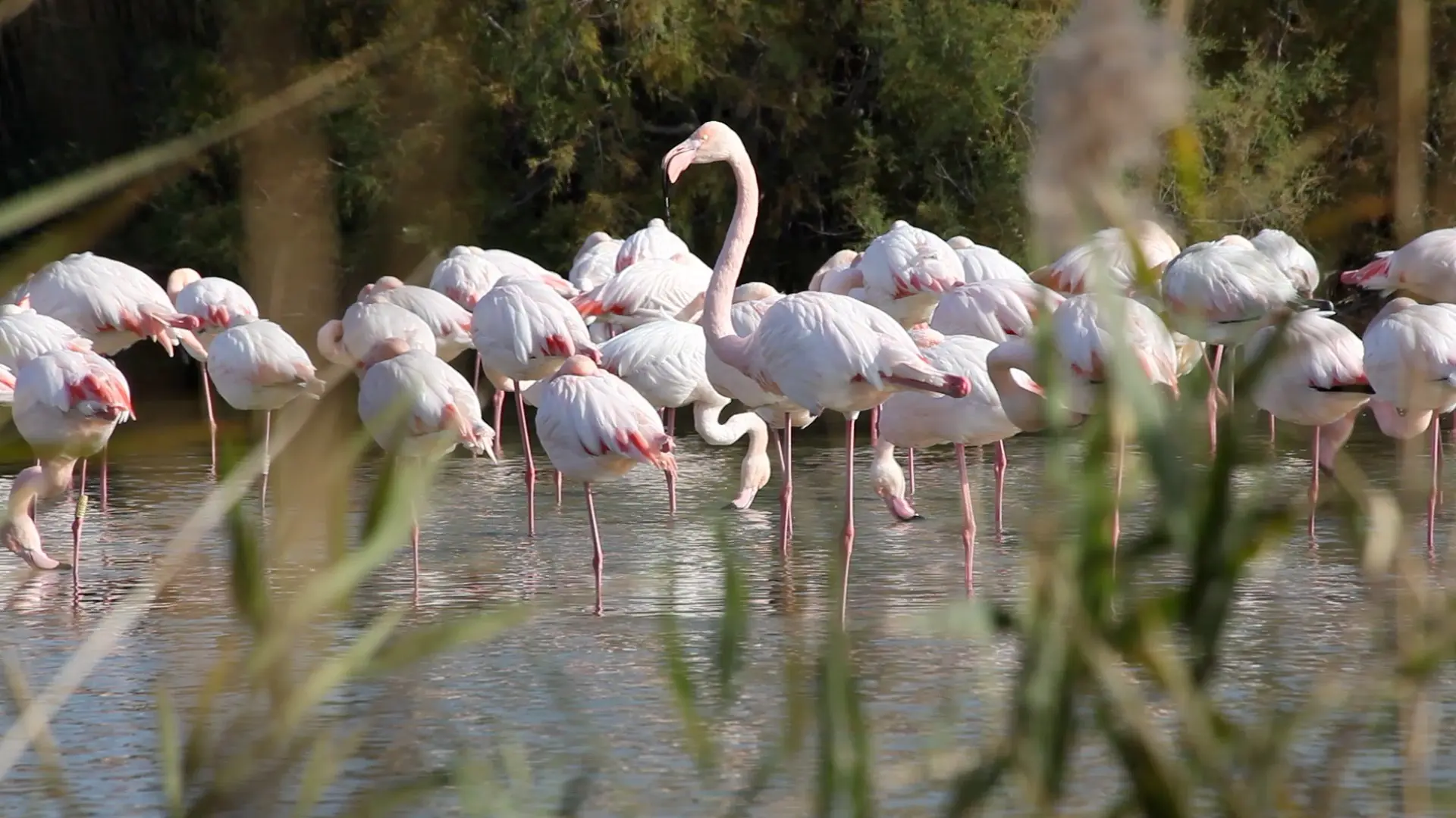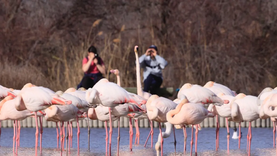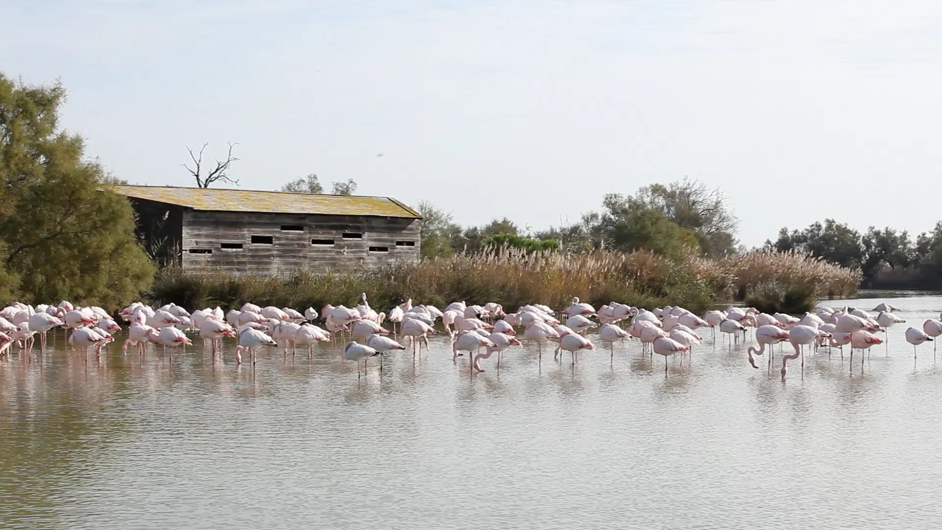 Der Flamingo, der emblematische Watvogel dieser Camargue-Landschaft, kann zwar das ganze Jahr über beobachtet werden, doch ab Dezember kann man seine großen Balzflüge miterleben... Mehrere andere Arten wie die Krickente oder der dreifarbige Zaunkönig (der kleinste Vogel Europas!) bewohnen die schönen Wintertage.