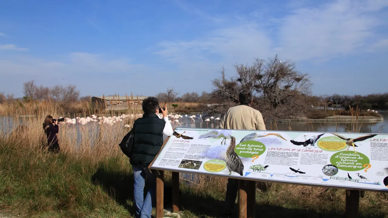 Der Pfad des Parc ornithologique du Pont de Gau ist ein unumgänglicher Treffpunkt für Ornithologen, Vogelbeobachter und alle Naturfreunde. Er bietet eine außergewöhnliche Nähe zur Natur! Die verschiedenen angelegten Wege laden die Besucher dazu ein, der weiten Welt der Vögel so nahe wie möglich zu kommen, aber auch der Fauna und Flora, in deren Nähe sie sich bewegen.
