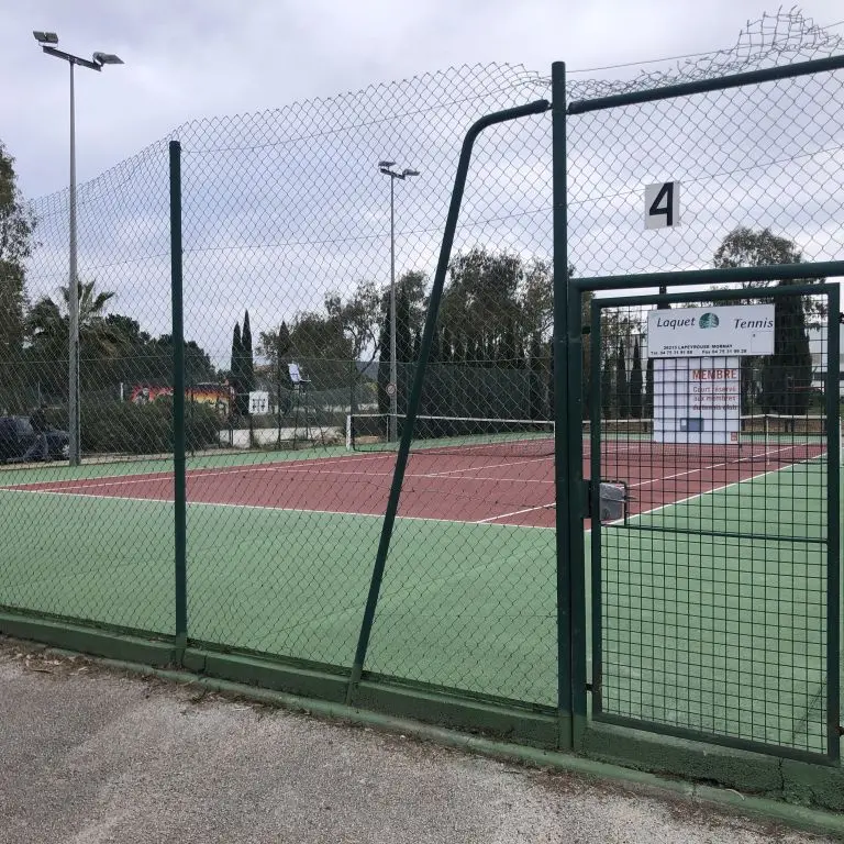 Vier Hartplätze (aus porösem Beton oder Quick) mit Beleuchtung und ein Clubhaus können von Mitgliedern reserviert oder von Personen außerhalb des Clubs gemietet werden.