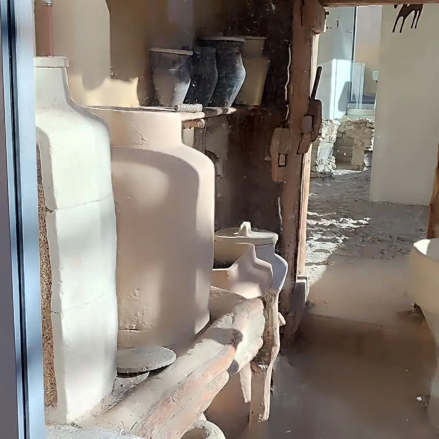 Die Aktivität konzentriert sich auf die einzige Lichtquelle, die Tür, in deren Nähe auf der Straße der Kamin aufgestellt ist. Um zu überleben, müssen wir Getreide, die Grundlage unserer Ernährung, von einer Ernte zur nächsten konservieren. Hierzu verwenden wir Keramikbehälter und vor allem Überkopfsilos aus Roherde in verschiedenen Formen, die vor Ort aus mit Pflanzen vermischtem Ton geformt werden. Neben diesen „Vorräten“ dienen auch andere Roherde-Objekte unterschiedlichen Zwecken: Grills und Öfen zum Verarbeiten und Kochen von Speisen, Urnen zur Zwischenlagerung und zahlreiche in Häusern gestapelte Kronen, vermutlich Vorräte an „Ton“.