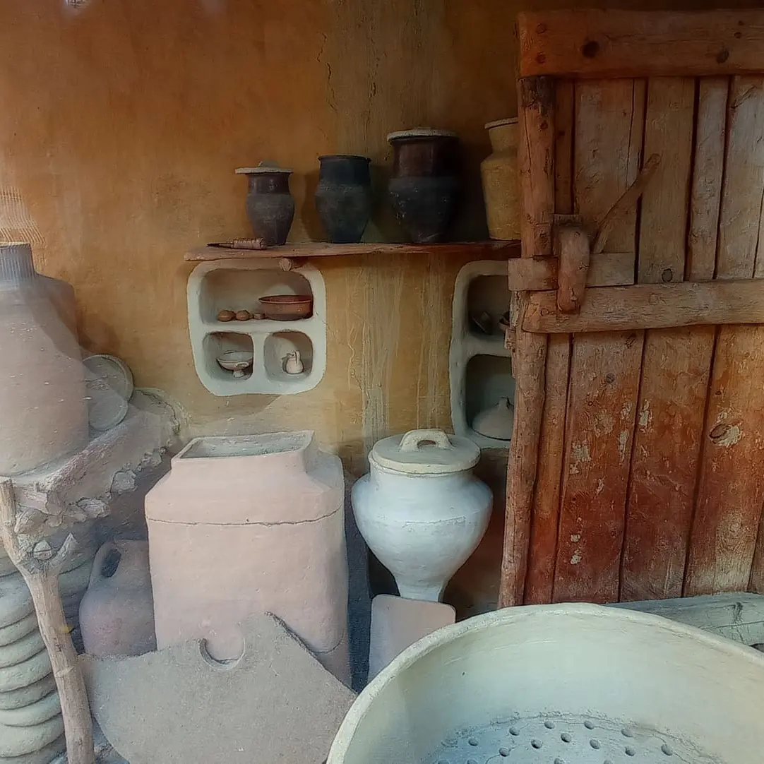 Auch die Böden der Häuser sind mit Lehm bedeckt. Die Dächer bestehen aus vergänglichen Materialien: einem Holzrahmen, dann Schilfrohr und einer dicken Erdschicht. Diese Häuser von 10 bis 20 m² sind der Ort für alltägliche Aktivitäten: Zubereitung und Kochen von Mahlzeiten, Spinnen, Weben, Korbflechten, Herstellung geformter Töpferwaren.