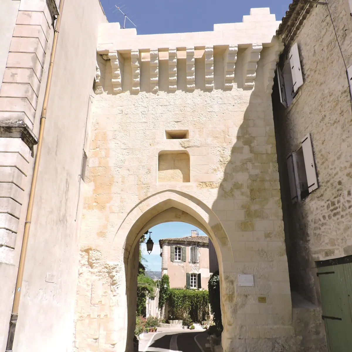 Dieses Tor ist als einziges von der Festungsmauer aus dem 13. Jhd. übrig. Reisende aus Avignon und Saint Rémy erreichten die Stadt über dieses Tor. Es ist gut erhalten und besitzt noch heute seinen Wachsaal, ein Ochsenauge oben links auf Höhe der Zinnen und eine Schießscharte oberhalb des Spitzbogens.