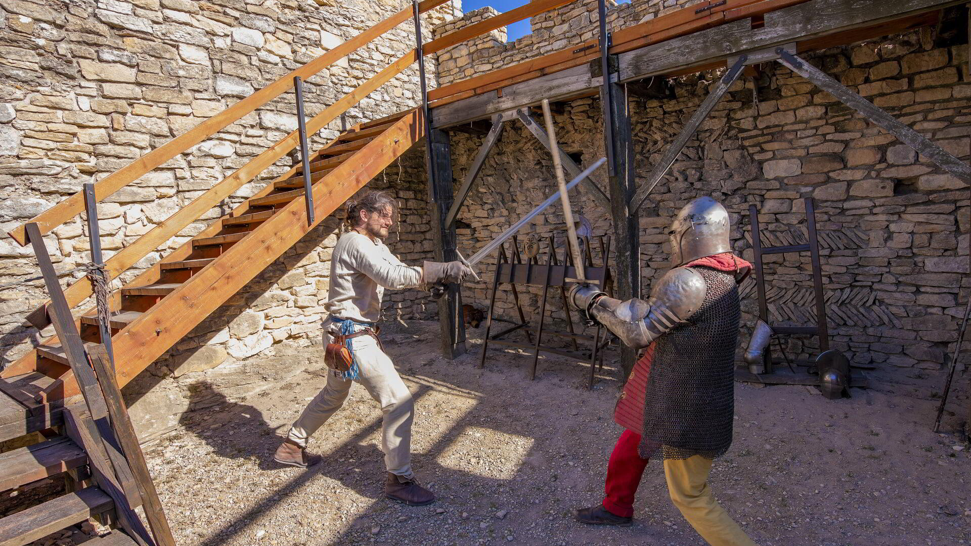 Edle Damen und Herren, erobern Sie die Zitadelle von Mornas! Durchschreiten Sie die Tore dieser mittelalterlichen Burg, die wie ein Adlerhorst errichtet wurde, und tauchen Sie auf spielerische und interaktive Weise in das Herz des Mittelalters ein.