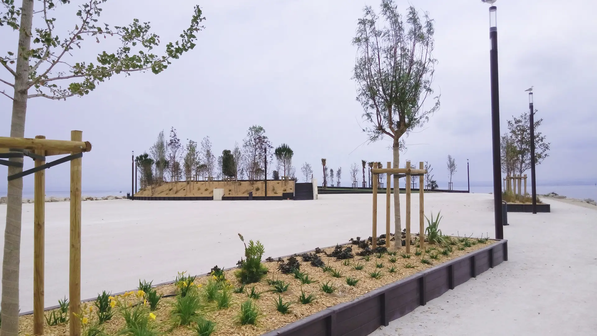 Die an den Ständen installierten Grasarten und -arten werden aufgrund ihrer Klimaresistenz ausgewählt. Das Tropfbewässerungssystem für Bäume und durch Bestreuen von Grasflächen ist sowohl effizient als auch wirtschaftlich.