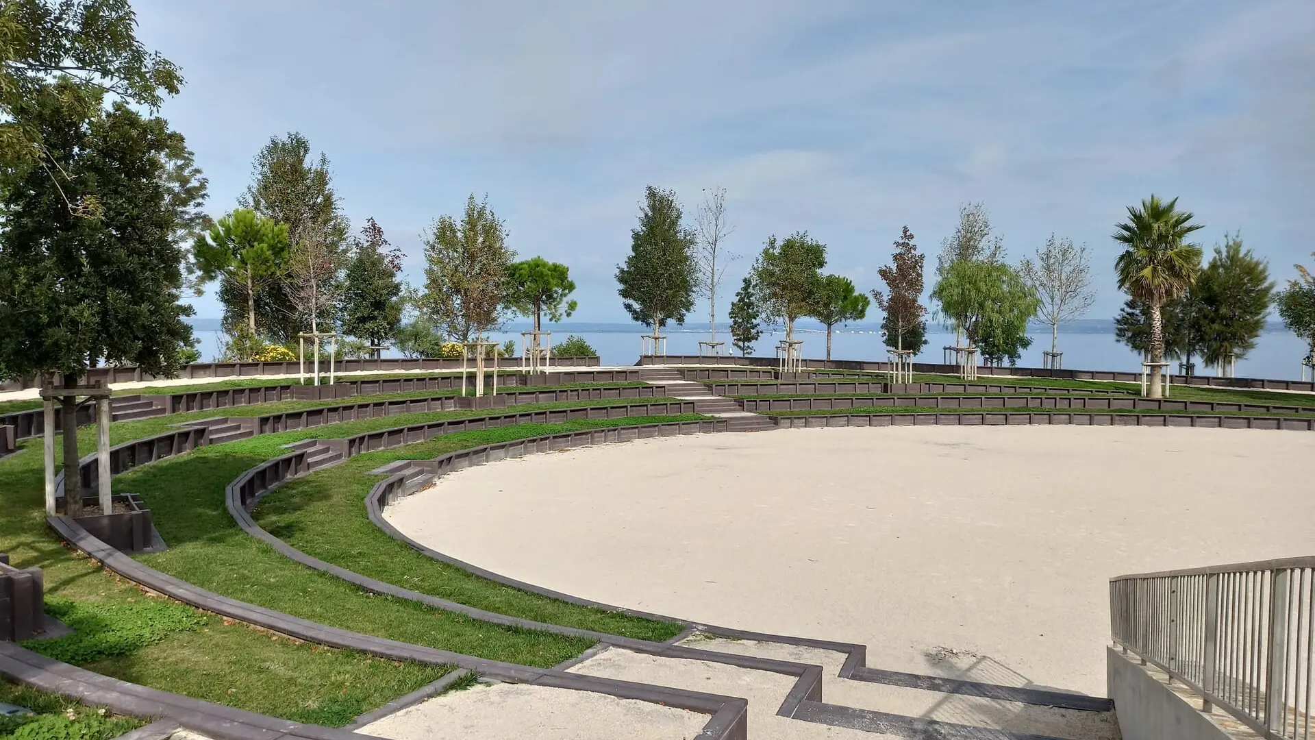 Mehr als 70 hohe Stängel (2 bis 5 m hoch) umgeben das grüne Theater: Schirmkiefer, Esche, Pappel, aber auch Grevillea, Eukalyptus, Kampferbaum. 27 verschiedene Arten mediterraner und exotischer Arten bilden ein abwechslungsreiches und harmonisches Ganzes. Diese Anordnung stellt einen Pflanzenfilter auf der Rückseite der Tribünen dar, um das Mistral zu schützen und im Sommer Schatten zu spenden.
