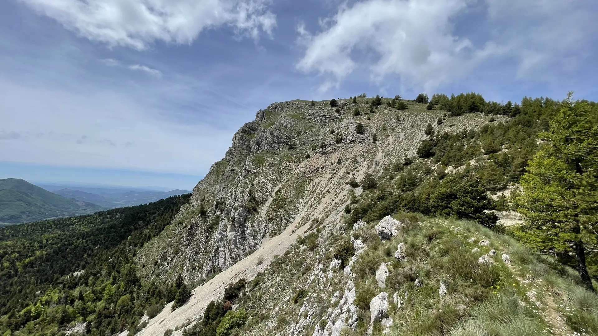 Der Berg Géruen ist wie viele benachbarte Gipfel ein charakteristischer Kalksteinblock; Er überblickt das Duyes-Tal und ist am häufigsten über den Col de Fontbelle erreichbar. Sie werden das Dorf Thoard sehen, Felder, die manchmal mit echtem Lavendel (und nicht Lavandin) bewirtschaftet werden, und erstaunliche Dekorationen aus großen Kalksteinblöcken, die in den darunter liegenden Mergel gepflanzt zu sein scheinen. Das Gebiet wurde Ende des 19. Jahrhunderts – Anfang des 20. Jahrhunderts vollständig aufgeforstet. um Erosion zu bekämpfen. Dominiert die Österreichische Schwarzkiefer, bevölkern Eschen und Erlen die feuchten Täler, während Waldkiefern und Ahorne die sonnigen Hänge erhellen. Die Artenvielfalt dort ist bemerkenswert.