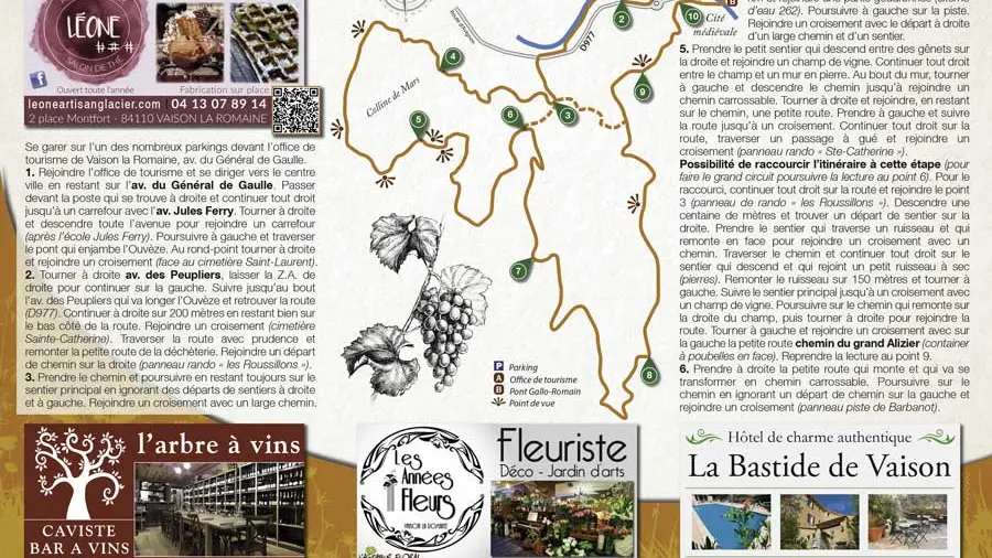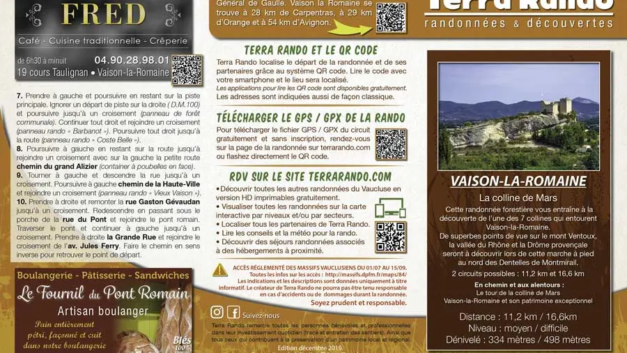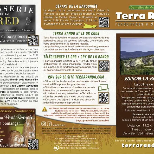 Sie finden die Wanderkarte kostenlos im Office de Tourisme du Pays Vaison Ventoux oder als Download auf der Website: terrarando.com