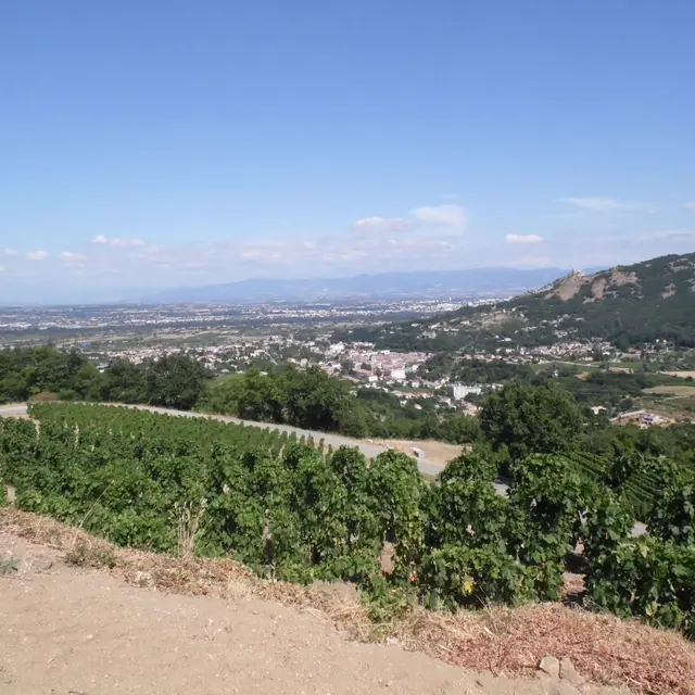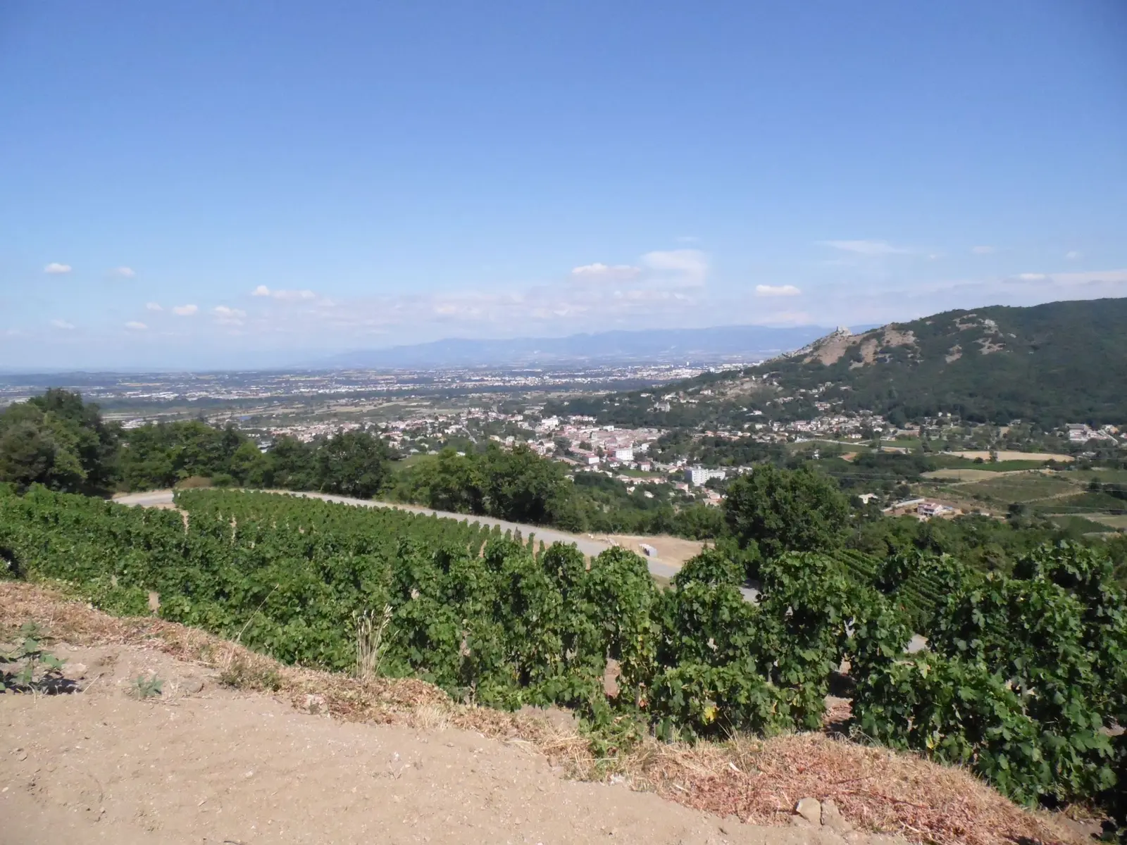 Dégustation de vin rosé en terrasse, sous le soleil de Provence, avec vue sur la campagne environnante.