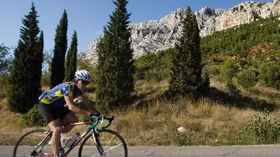 Sie erstreckt sich über 60 km, startet in Aix-en-Provence und umrundet einen Naturmythos in der Provence: Willkommen auf der Fahrradtour zum Berg Sainte-Victoire! Nach einem eher sportlichen ersten Teil zwischen hügeligen Weinanbaugebieten und hochgelegenen Dörfern, schließen Sie sanft mit der Cézanne-Route ab.
