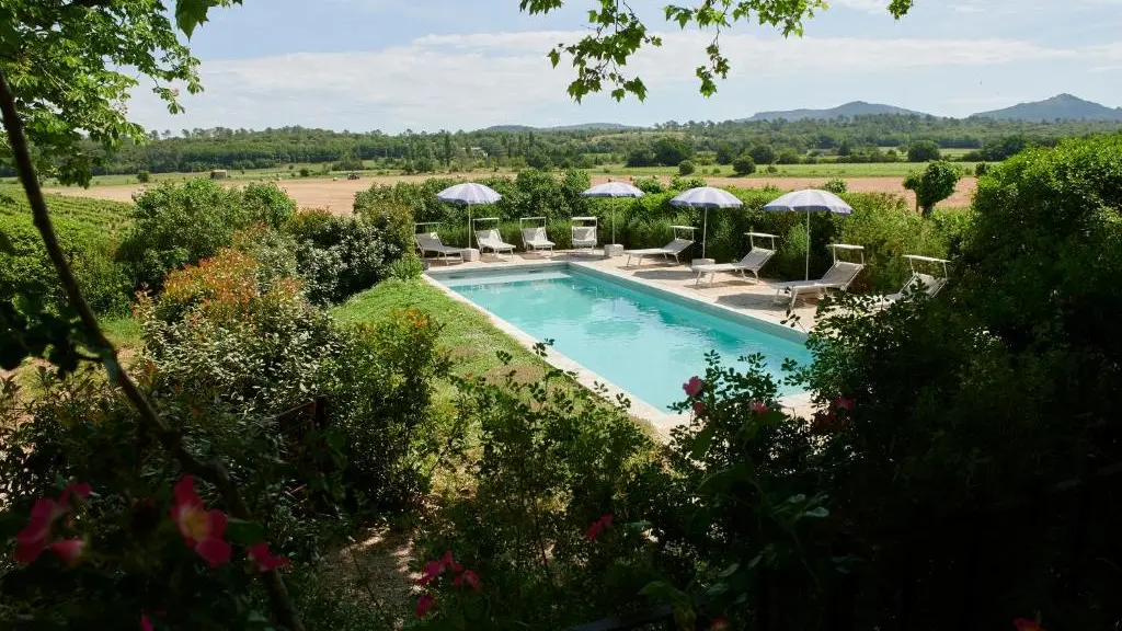Charakteristische 4- und 5-Sterne-Ferienhäuser mit Pool in historischen Gebäuden, die kürzlich renoviert wurden, und einem Empfangsraum.