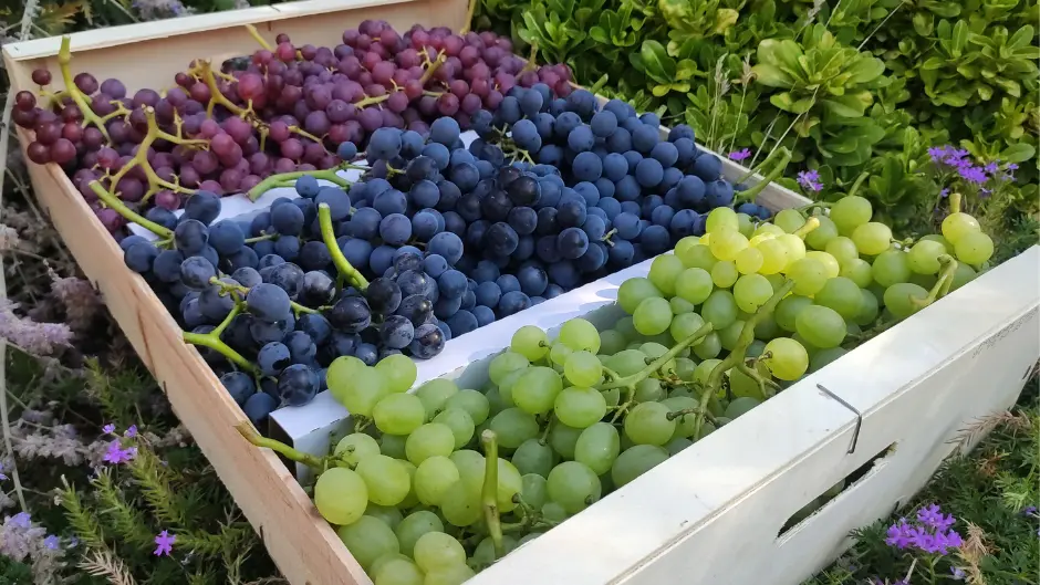 Entdecken Sie während der Produktionszeit (von Mitte Juli bis Ende September) unsere Tafeltrauben mit oder ohne Kerne.